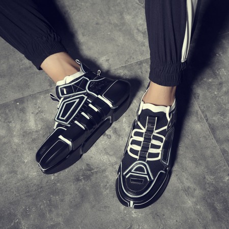 Trendy Shoes Explosive Style Transparent Sole Casual Shoes Breathable Flying Woven Tongue Men's Sports Shoes Genuine Leather